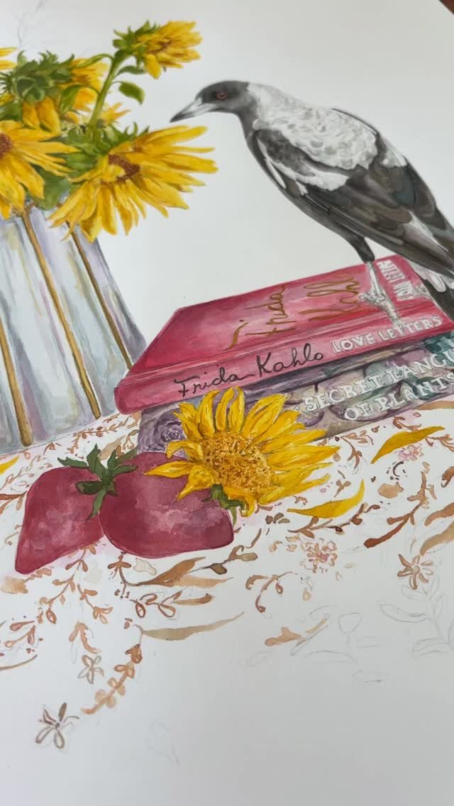 An original artwork created with Pen and Ink on Arches watercolour paper, ‘The Gang’s All Here’ is a colour filled love letter to Australia’s native birds.