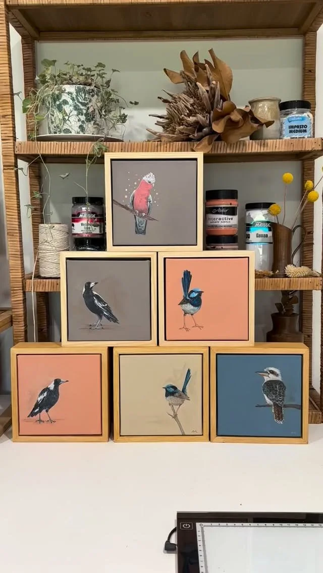 Working in her studio near the river, Rhian’s artworks are a reflection of the love she has for nature with a focus on Australian native birds and florals.
