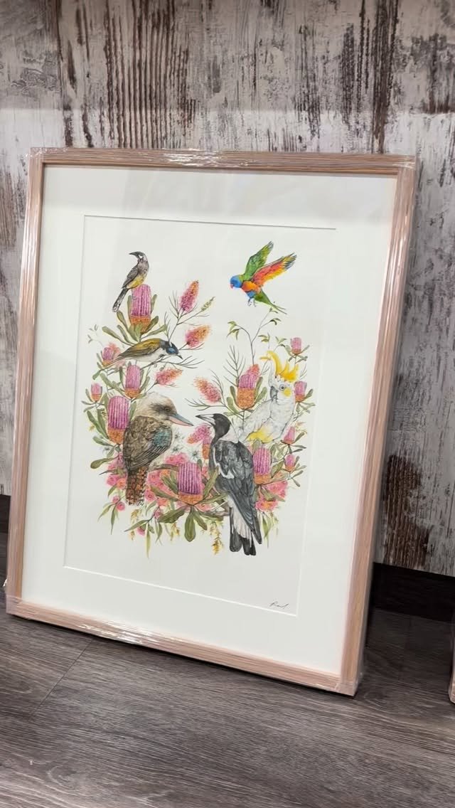 Delicate and uplifting, each art print pairs vibrant Australian native flowers with a charming small native bird. Hand painted in pen, ink, and watercolour, these pieces capture the beauty of the bush in intricate detail and soft, flowing colour. Perfect for bringing a sense of calm, nature, and joy into any space.